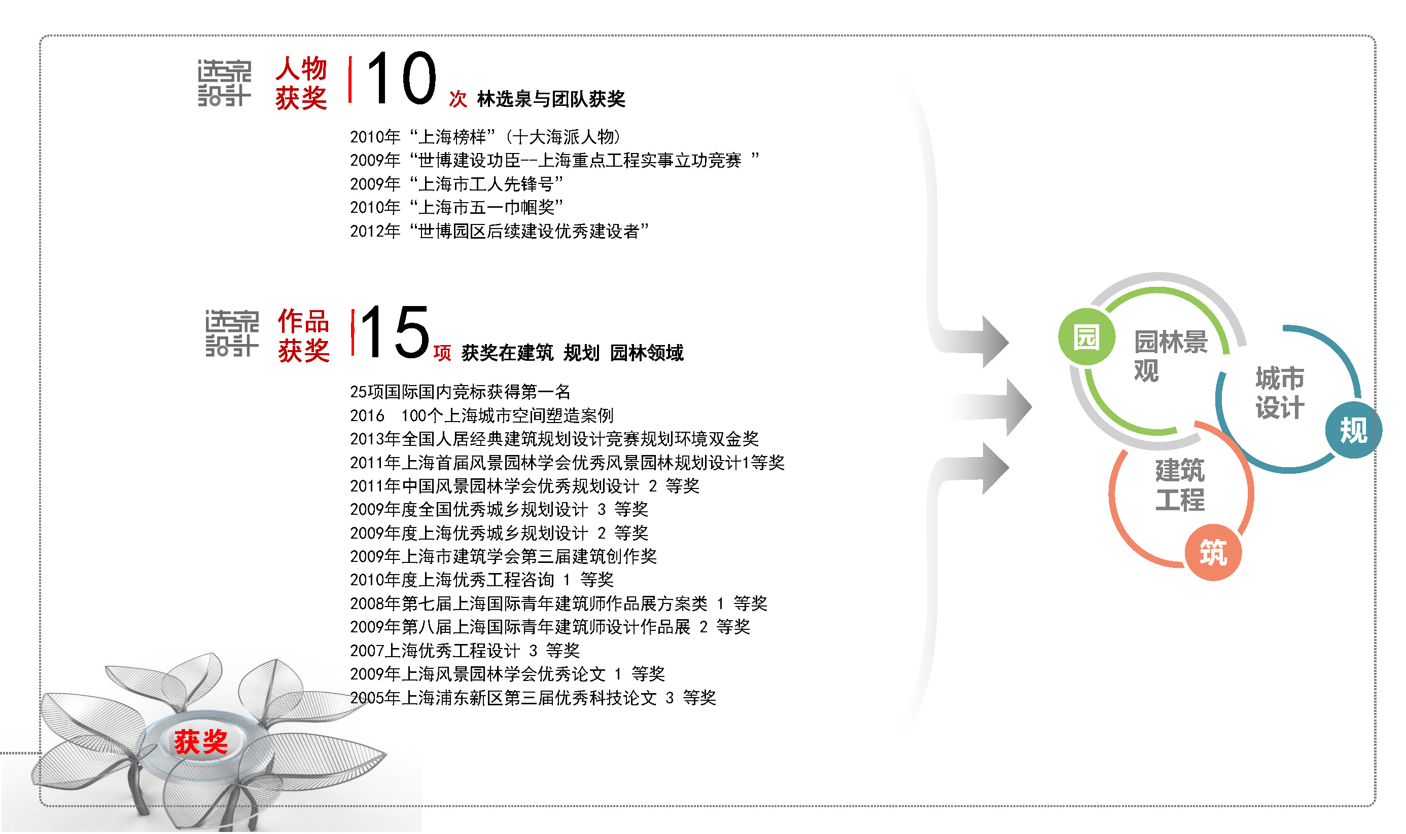 作品獲獎 15項 在建筑 規(guī)劃 園林等領(lǐng)域 獲獎