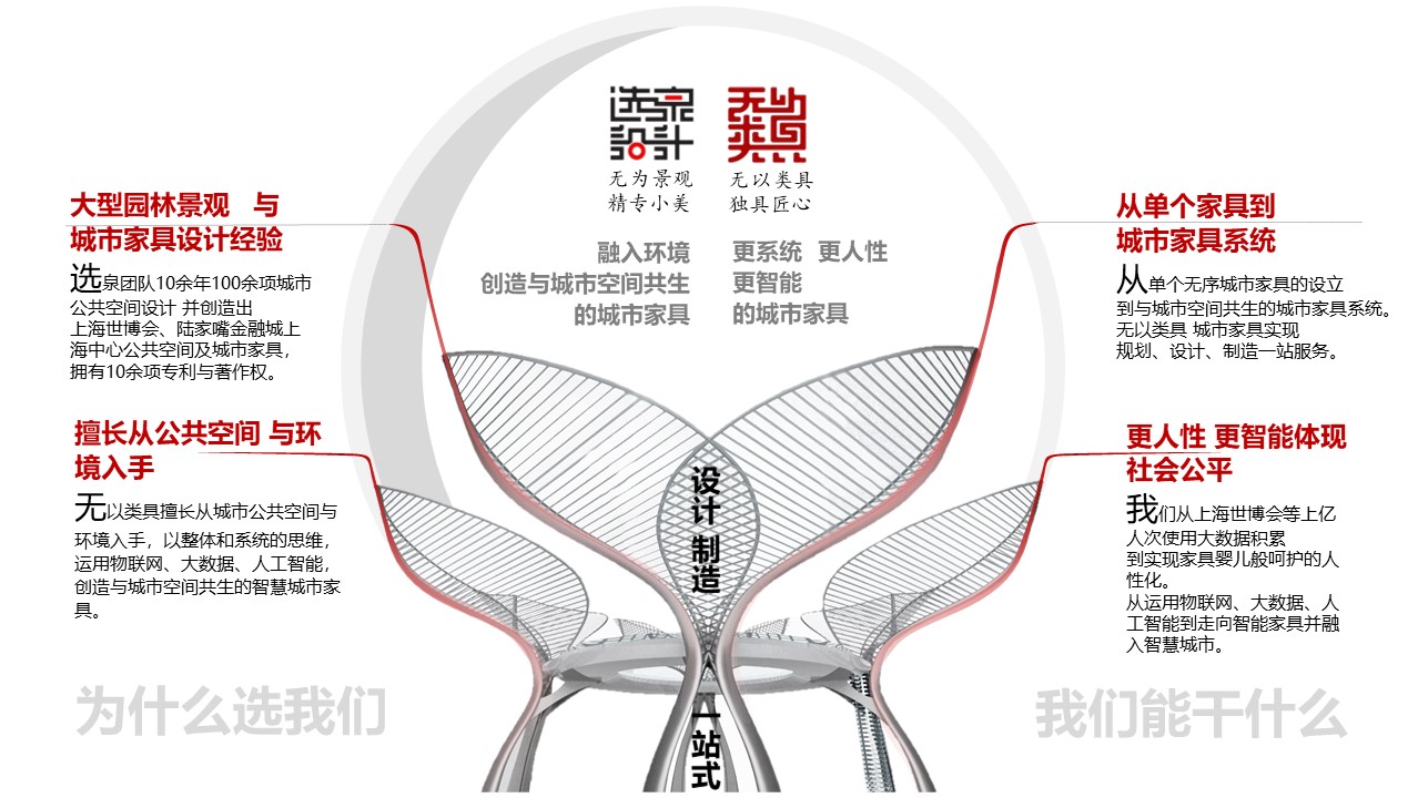 選泉設(shè)計旗下無以類具,致力于智慧城市家具與裝配花園陽臺的設(shè)計制造一站式。