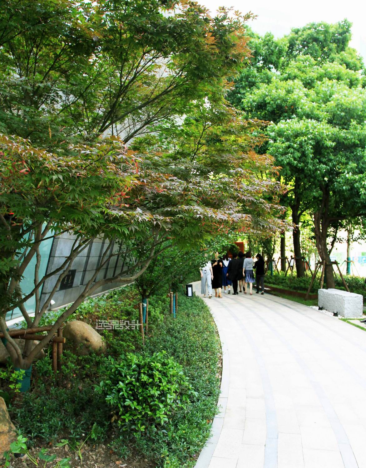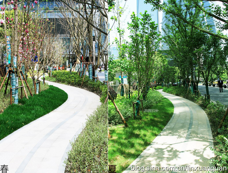 將傳統(tǒng)的直線人行道設(shè)計改為曲直結(jié)合的設(shè)計,即將筆直的市政人行道變成綠化帶里的曲折有致休閑步道。