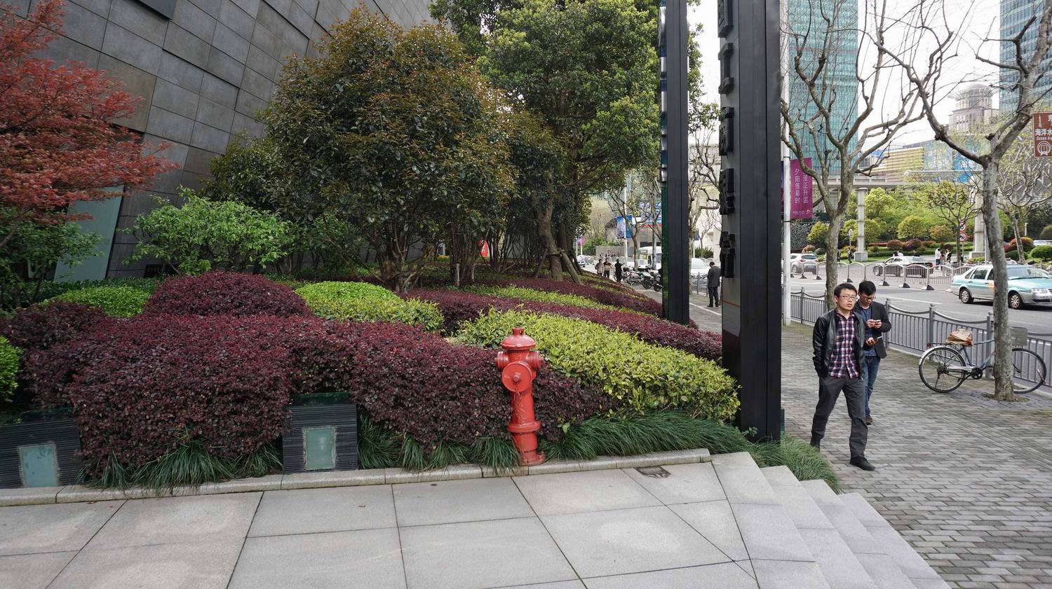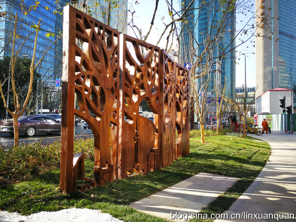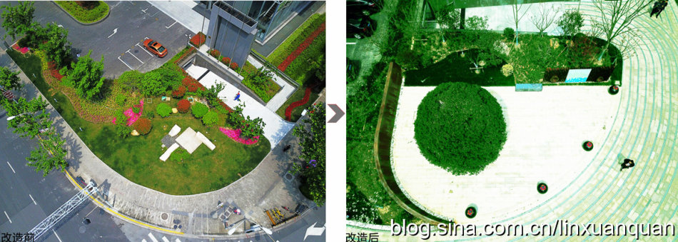 比如金磚大廈一個完整的綠化帶,可以一半是屬于樓宇管理,另外一半是屬于市政部門來管理,在綠地中間設(shè)置一個低矮的欄以示邊界,同時,各種市政公共設(shè)施,如城市的電,水,以及通訊設(shè)施等的一些設(shè)施,也完全無視空間的存在,只放在自己認為合適的地塊。這次在改造中,對于各種城市的各種基礎(chǔ)設(shè)施無序擺放,以及丑陋的外觀,目前只能進行一些遮擋式的修飾,位置還沒有辦法進行統(tǒng)一的規(guī)劃及擺放。