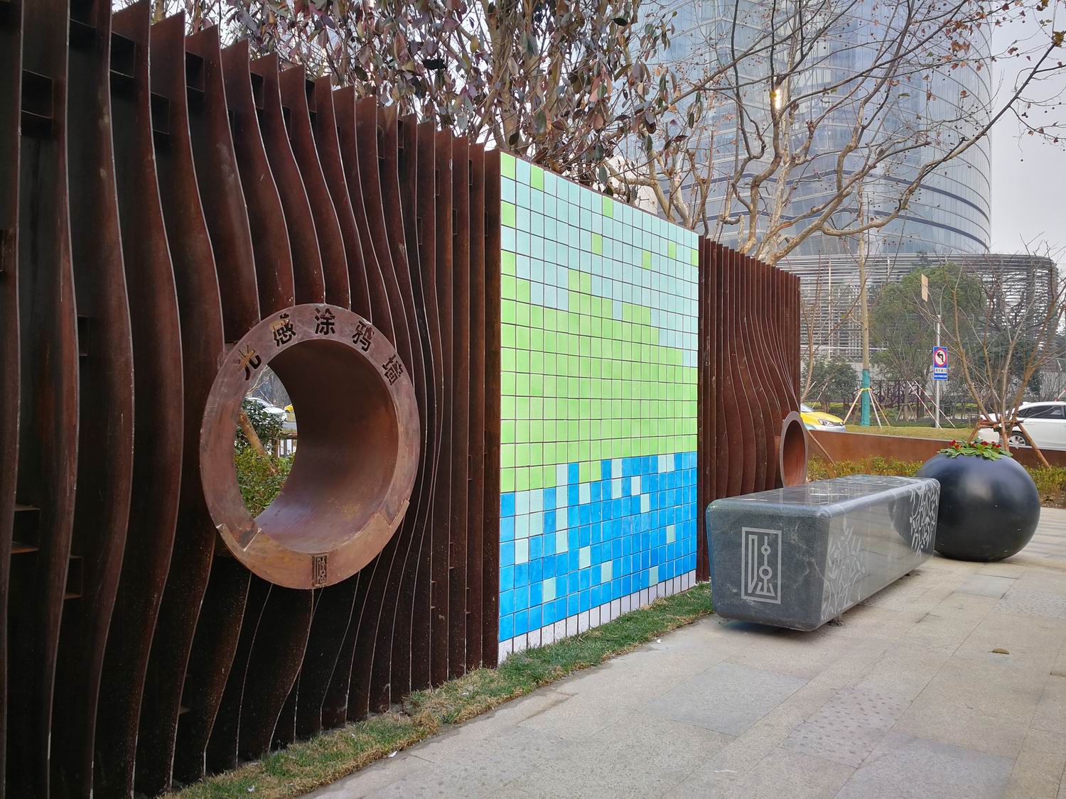 陸家嘴金融城發(fā)展局在陸家嘴公共空間更新中,給陸家嘴白領(lǐng)提供一個能疏解壓力、趣味互動的光感涂鴉墻。