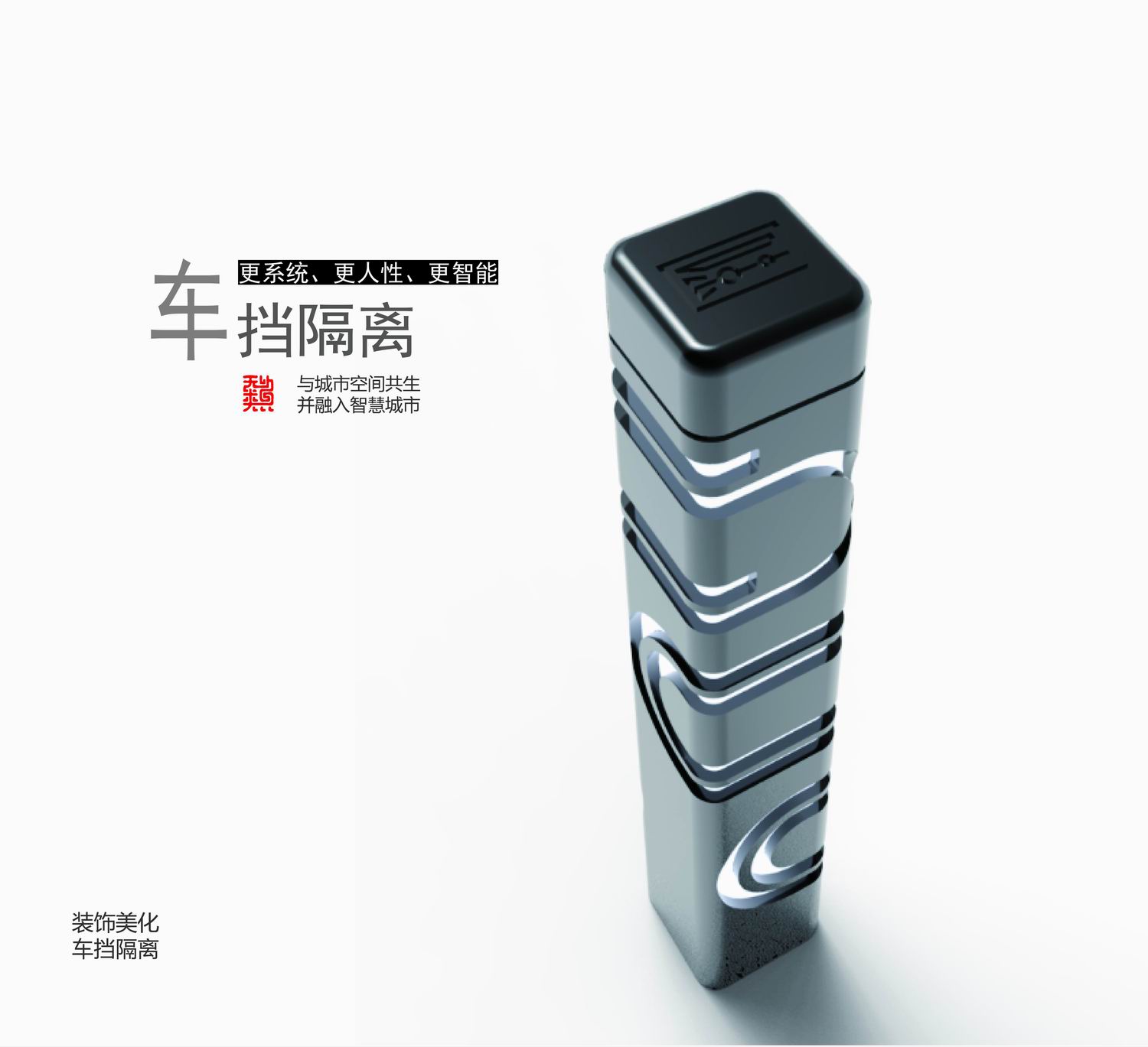 傳統(tǒng)常車檔車阻形式單一、粗笨,新設(shè)計的車檔簡潔并改良安裝方法,外表皮運用回形針的圖案形似中國傳統(tǒng)吉祥條形紋樣,使車檔更精致、美觀,同時根據(jù)環(huán)境需要設(shè)置成不同材質(zhì)。
