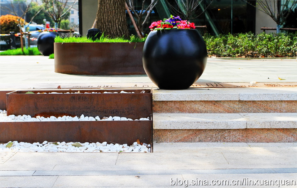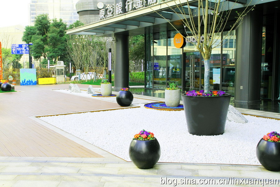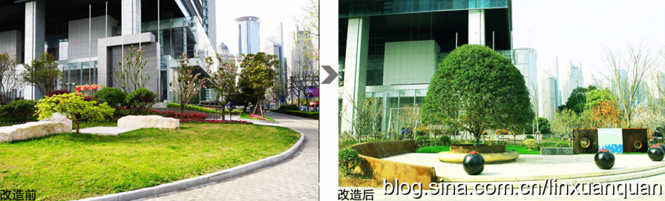 比如金磚大廈一個完整的綠化帶,可以一半是屬于樓宇管理,另外一半是屬于市政部門來管理,在綠地中間設(shè)置一個低矮的欄以示邊界,同時,各種市政公共設(shè)施,如城市的電,水,以及通訊設(shè)施等的一些設(shè)施,也完全無視空間的存在,只放在自己認為合適的地塊。這次在改造中,對于各種城市的各種基礎(chǔ)設(shè)施無序擺放,以及丑陋的外觀,目前只能進行一些遮擋式的修飾,位置還沒有辦法進行統(tǒng)一的規(guī)劃及擺放。