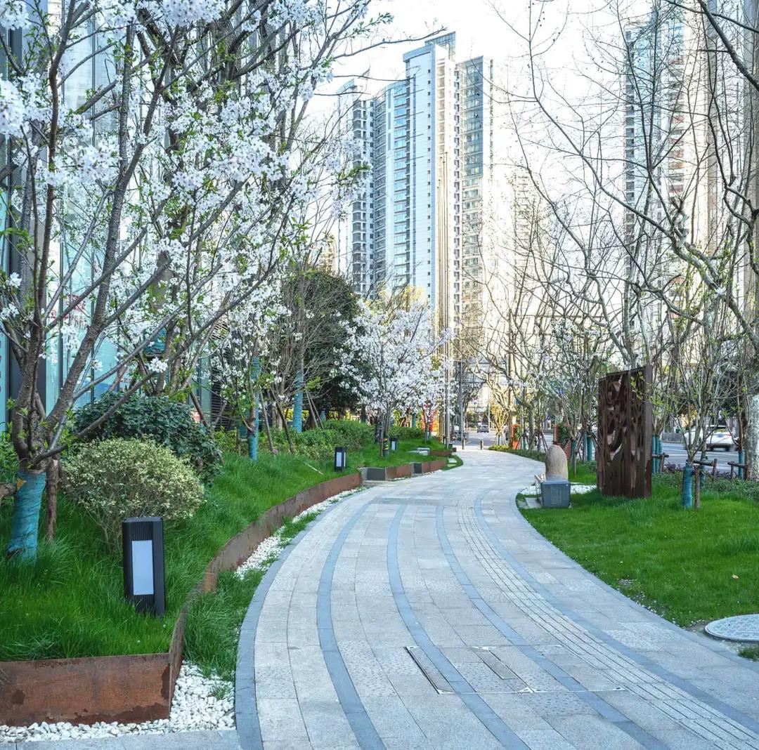 將傳統(tǒng)的直線人行道設(shè)計改為曲直結(jié)合的設(shè)計,即將筆直的市政人行道變成綠化帶里中曲折有致的休閑步道。