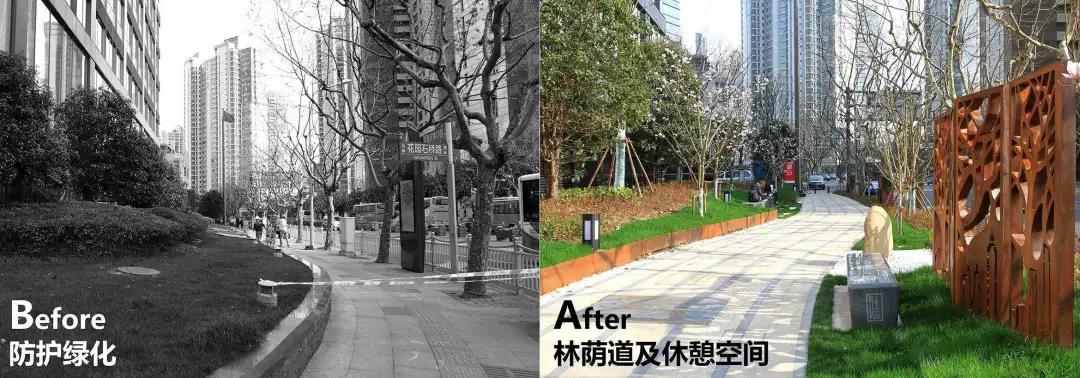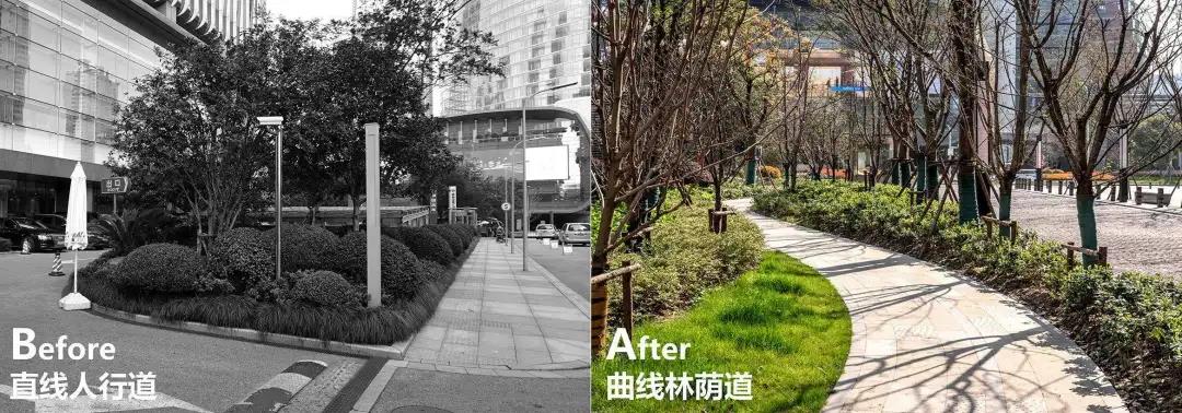 ▼改造前與后的太平金融大廈外人行林蔭道©選泉設(shè)計