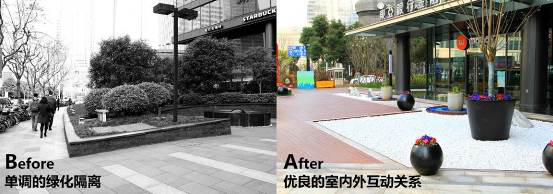 ▼改造前與后的金磚大廈口袋公園咖啡吧©選泉設(shè)計