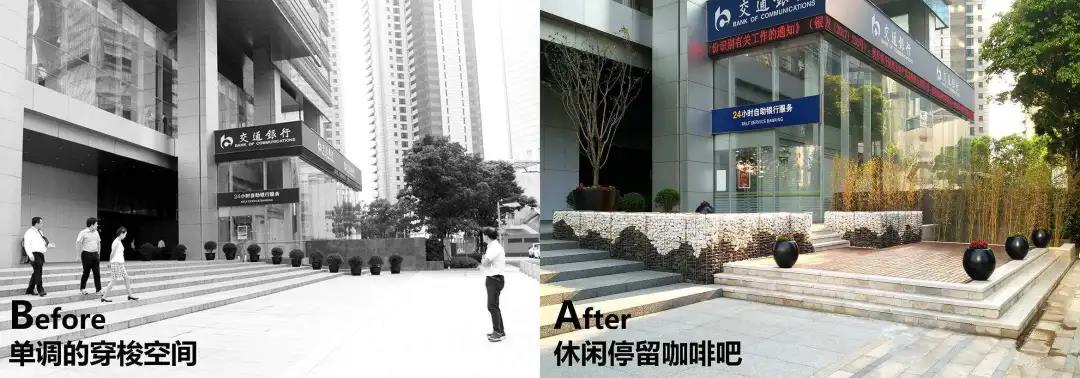 ▼改造前與后的東亞銀行大廈口袋公園©選泉設(shè)計