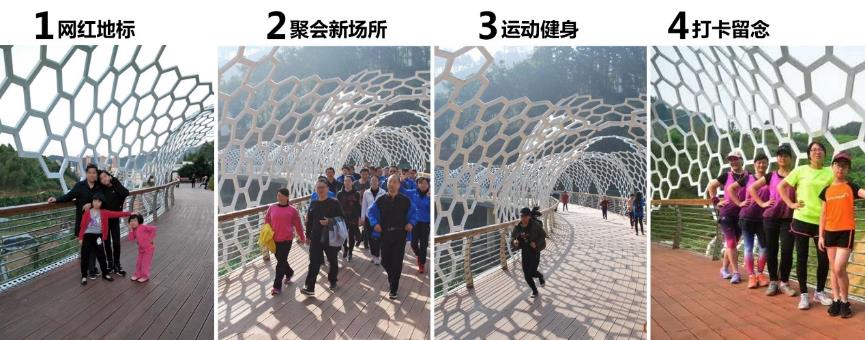 大田板凳龍橋建成后,各種吐槽“蛇皮”“絲襪”“蜂窩”等,除了健身休閑功能外,板凳龍橋卻成為市民喜愛拍照留念的新地標景點。