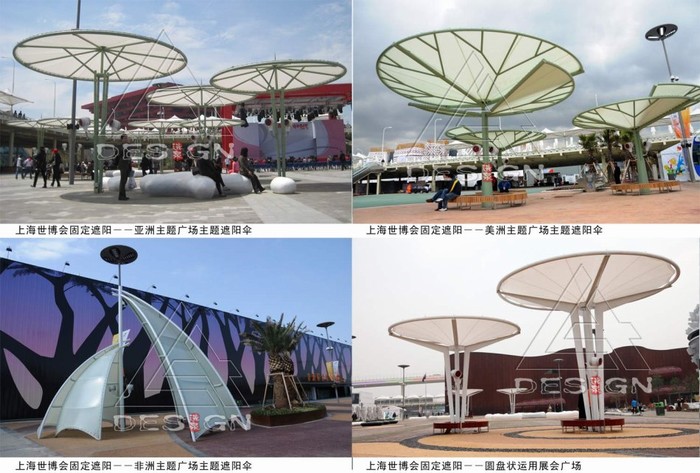 上海世博會(huì)場(chǎng)地公共空間將肩負(fù)容納巨大人流的重任,遮陽(yáng)避雨設(shè)施需求量大;場(chǎng)地空間的復(fù)雜性、配套設(shè)施多且邊界條件不斷變化,需要統(tǒng)籌布局遮陽(yáng)設(shè)施,實(shí)現(xiàn)系統(tǒng)化,并且在滿足遮陽(yáng)基本功能的前提下實(shí)現(xiàn)技術(shù)與藝術(shù)的融合。