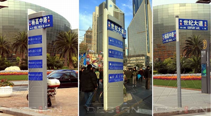 林選泉說(shuō),路名牌作為城市景觀的元素,小得不起眼,卻有“本地人臉、外地人眼”之稱,同時(shí)對(duì)市民出行有著重要的指示意義。城市文明進(jìn)程中,需要大家改變傳統(tǒng)思路,對(duì)城市公用設(shè)施進(jìn)行人本化的深層思索。林選泉針對(duì)浦東舊路名牌存在的不足進(jìn)行分析,從現(xiàn)代認(rèn)知心理學(xué)和人機(jī)工程學(xué)角度出發(fā),研究人的信息接受過(guò)程,確定路名牌的圖形、文字、色彩、材料等各項(xiàng)綜合指標(biāo)以及制作工藝,讓路名牌所傳遞的信息具有快速、方便、易于識(shí)別的特點(diǎn),盡量讓路名牌形式趨于美。這又是老子道家哲學(xué)觀中“大而無(wú)外,小而無(wú)內(nèi)”的體現(xiàn),它揭示了老子的宇宙觀,也反映了景觀規(guī)劃設(shè)計(jì)中一個(gè)很重要的問(wèn)題——“尺度”問(wèn)題——從1米人的尺度到1000公里區(qū)域尺度,甚至到國(guó)土資源和地球表層規(guī)劃。2006年5月,浦東內(nèi)環(huán)把該新型路名牌作為試點(diǎn)開(kāi)始運(yùn)用,由于社會(huì)反饋很好,浦東新區(qū)政府很快就決定全區(qū)推廣,隨后幾個(gè)月內(nèi)整個(gè)區(qū)域就都換上了新路牌。