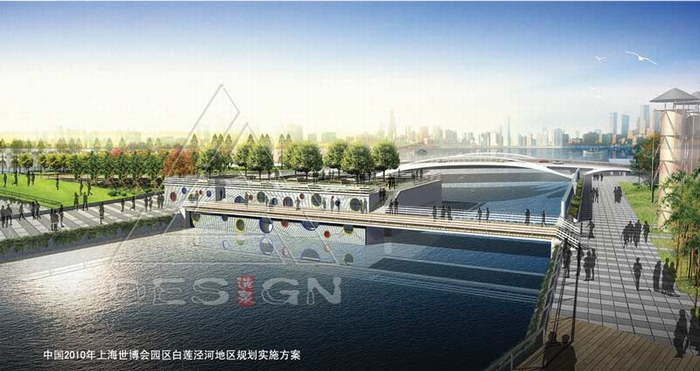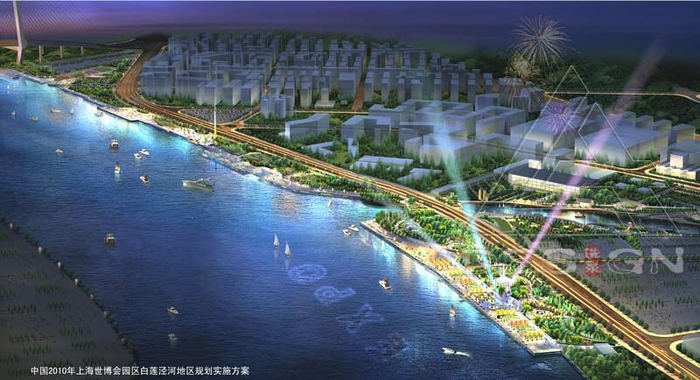 林選泉:從2006年開始,通過公司的平臺,我有幸參加了世博的3個項目,其中兩個我充當(dāng)了主持主創(chuàng)的角色:上海世博會園區(qū)白蓮涇河地區(qū)規(guī)劃實施方案(注:方案征集獲第一名)、上海世博會浦東園區(qū)場地設(shè)計(注:國際競標(biāo)第一名中選方案),還有一個是負(fù)責(zé)其中的環(huán)境景觀:世博會園區(qū)樣板組團項目設(shè)計(注:該部分競標(biāo)獲第二名)。