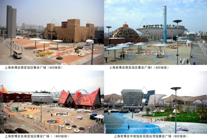 寧中意:在世博場(chǎng)地林選泉BC片區(qū),各個(gè)國家館根據(jù)地理位置分布,每個(gè)洲都有自己的主題廣場(chǎng),這幾大廣場(chǎng)通過哪些設(shè)計(jì)語匯來體現(xiàn)各自特色的呢?