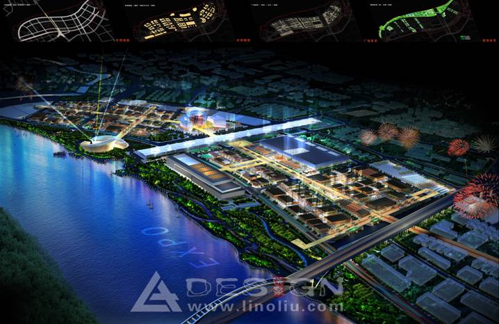 世博園區(qū)夜景照明主題分區(qū)設(shè)計(jì)、夜景照明色彩分區(qū)設(shè)計(jì)、夜景照明空間與時(shí)間手法、綠色照明設(shè)計(jì)、燈具選型、燈具布置等。