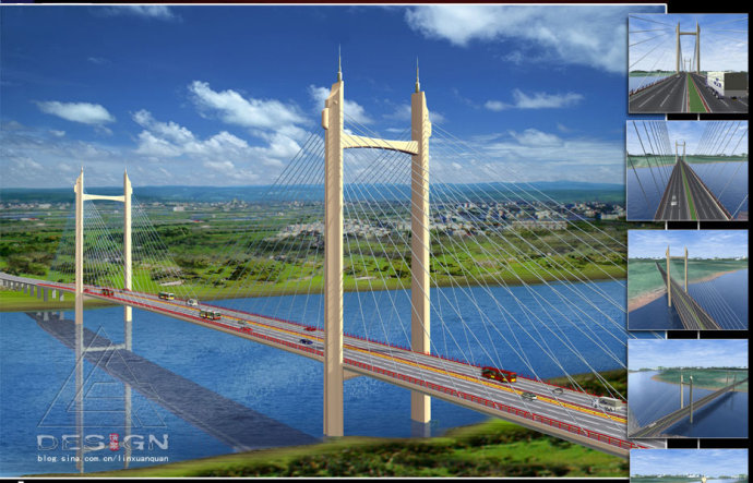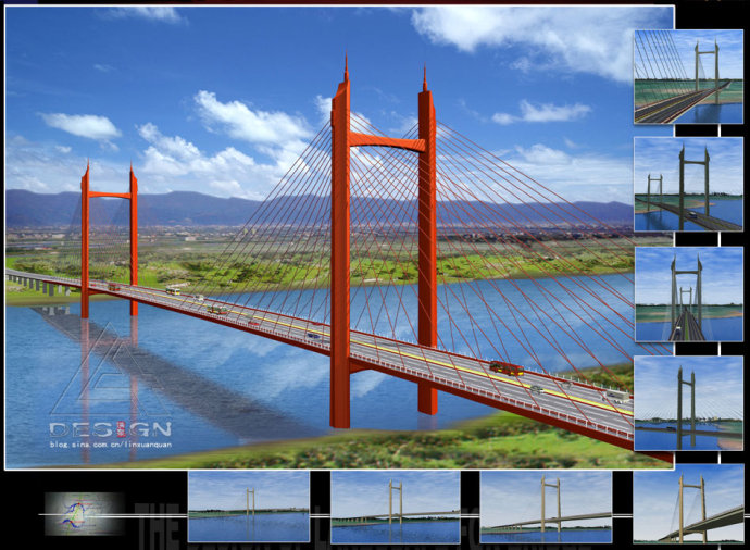 強調(diào)突出橋梁建筑的存在并引人注目,使橋梁具有支配和成為風(fēng)景的主要組成因素作用,在以橋梁為主景前提下匯集各種自然的、人工景觀、創(chuàng)造出新的環(huán)境景觀 |