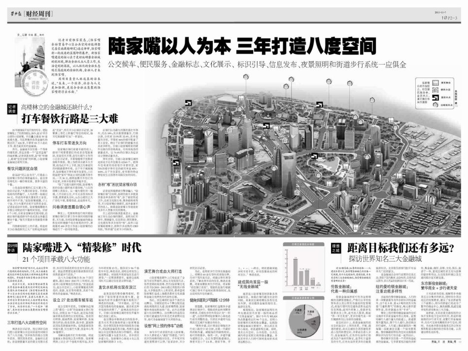 而上述的問(wèn)卷調(diào)查也顯示,金融城工作生活白領(lǐng)的困擾,表現(xiàn)為打車停車、便捷餐飲、信息聯(lián)動(dòng)、便民健身、文化感知等多方面的“難”。雖然小陸家嘴高樓林立,但和許多成熟的CBD相比,“軟環(huán)境”還有不少的缺失。