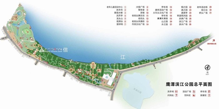 二、規(guī)劃前瞻性 城市濱水區(qū)是產(chǎn)生城市空間特征,從而形成城市特有面貌的重要因素之一。同時濱水區(qū)也是釋放自我、親近自然的場所。所以,歷來都是城市商業(yè)地產(chǎn)開發(fā)的“兵家”競爭之地。鷹潭市政府具有前瞻性的舉措在于,在對該公園原址――老碼頭棚戶區(qū)花費約2億元動遷了987戶居民后,并沒有成為商業(yè)地產(chǎn)(土地價值約8億元)開發(fā)之地,而是“還湖岸于人民,還綠于人民”,將之建設(shè)成一個大型的城市濱江開放公園(圖3),
