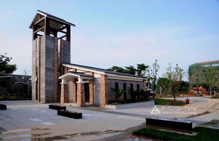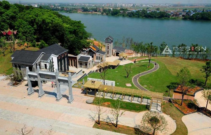 六、設(shè)計特色 1)城市文脈繼承發(fā)展,場地寫意體現(xiàn) 文脈表達(dá)更好方式應(yīng)該是對原有城市風(fēng)貌的保護(hù)與延續(xù)發(fā)展,但在當(dāng)下,大拆大建已經(jīng)使之舉步維艱。所以對文脈的表現(xiàn),除了保留場地中原有的大樹、部分原有的臺階和碼頭,對沿江民房拆遷后廢棄建筑材料適當(dāng)進(jìn)行回收利用,以保存城市文化記憶外,我們采取了一種以意取勝的方法,通過將這種文脈物化到鷹潭風(fēng)情園的傳統(tǒng)院落建筑設(shè)計(圖13),  (圖13)