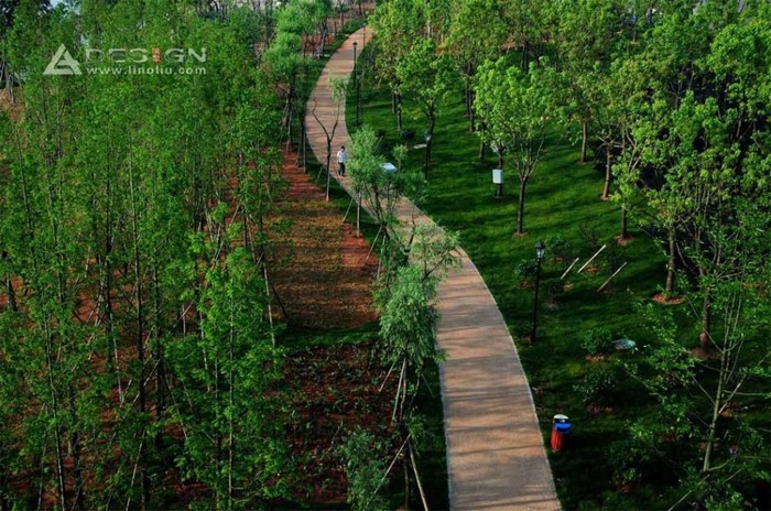 主園路貫穿石、水、林、島,于其沿線組織出不同的生態(tài)、人文景觀,隨草地、路的轉(zhuǎn)折處設(shè)置各具特色的節(jié)點(圖31-33),讓活動休憩場所與不同的自然環(huán)境完全融合。  (圖31)