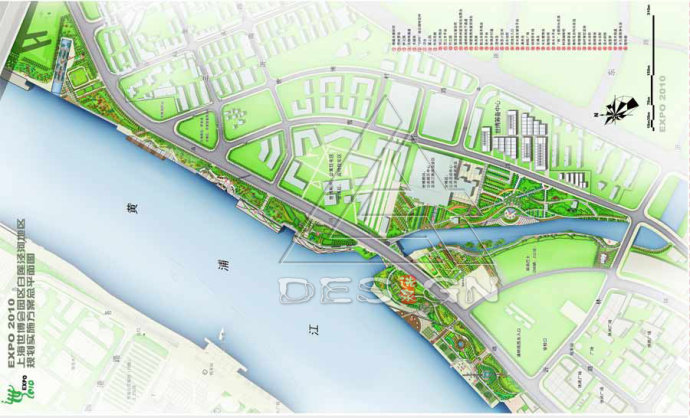 設計中著重解決了8大問題:防洪與親水游憩的問題、世博舉辦期間夏季高溫與防暑降溫的處理、場外的交通疏散功能問題、場地的歷史文脈延續(xù)的問題、會展期間與后續(xù)利用問題等。