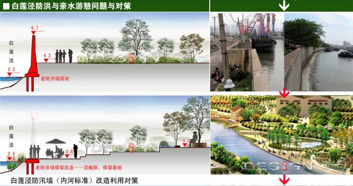 Fig.7 Measures for flood-control and water-enjoyable recreational space in Huangpu River