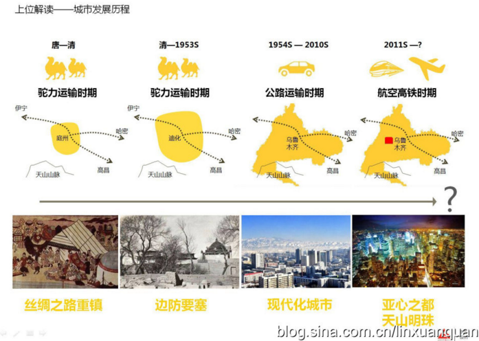 新時(shí)代下,烏魯木齊市定位亞心之都,天山北坡經(jīng)濟(jì)帶的增長(zhǎng)極、向西開(kāi)放的能量集中地中國(guó)西部的第四極、亞歐大陸橋頭堡、中西亞的門(mén)戶、多民族和諧的宜居城市和天山綠洲生態(tài)園林城市。