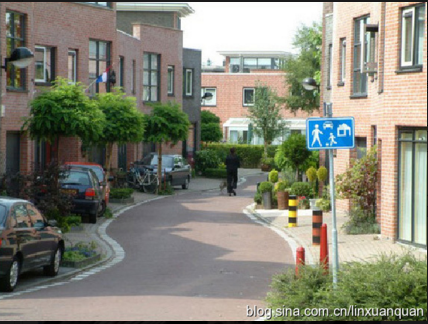 ?? 我們的生活的徹底改變?cè)谟诂F(xiàn)代城市建設(shè)的邏輯是為車而設(shè)計(jì),所以丈量城市的尺度就是以車為標(biāo)尺,這樣,對(duì)應(yīng)于這樣的標(biāo)尺,就需要寬闊的大馬路,雄偉但缺少細(xì)節(jié)的建筑,因此也帶來了交通安全,汽車尾氣,汽車噪音等等問題。今天的開放小區(qū),將小區(qū)道路與市政道路進(jìn)行連接,也帶來居住業(yè)主對(duì)安全以及環(huán)境的擔(dān)心。解決這樣的問題也不是沒有對(duì)策,比如社區(qū)的安靜交通策略,或者干脆恢復(fù)成人行交通空間。在歐洲60年代提出了一個(gè)人車共享的社區(qū)和居住區(qū)街道。是首先在荷蘭推出了一個(gè)“woonerf”居住區(qū)街道,這個(gè)單詞在荷蘭語中的意思是“宜居的街道”,在這種街道上,步行者和騎自行車者具有優(yōu)先權(quán),它是一種“共享空間”,給步行者,玩耍的小孩,騎自行車者和低速的機(jī)動(dòng)車來共同享用,將街道變成一個(gè)人人共享的公共空間,而不是汽車獨(dú)享的通道。其實(shí),今天的世界已經(jīng)不可能排除汽車的影響了,只是一味的接受或是抗拒都不是最好的辦法,如何合理的處置兩種的關(guān)系,才是政策實(shí)施者最應(yīng)該考慮的問題。