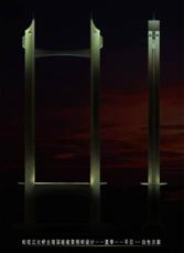 松花江大橋位于松花江干流中流,哈爾濱江段,是哈爾濱繞城高速公路(四方臺處)的一個重要組成部分。為雙面雙索結(jié)合梁斜拉橋,主跨336米,有其自身的景觀性、象征性、文化性和旅游性,他的建成將添補(bǔ)國內(nèi)在低溫地區(qū)建造特大斜拉橋的空白,他將成為新的沿江旅游景觀點,成為哈爾濱市具有標(biāo)志意義的景觀大橋,隨著哈爾濱城市建設(shè)的發(fā)展,它將成為一座城市橋梁,對松花江大橋進(jìn)行夜景景觀設(shè)計有著重要意義。