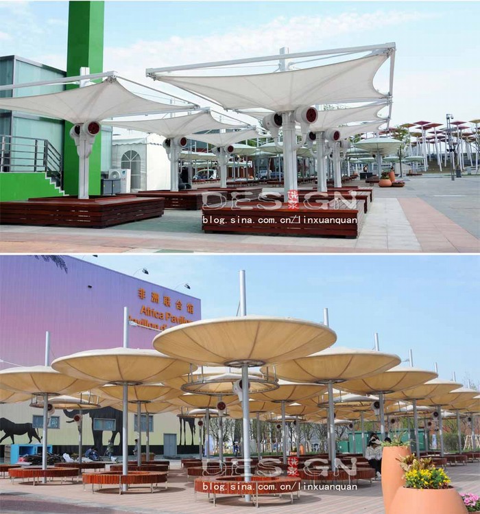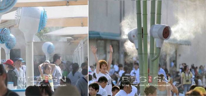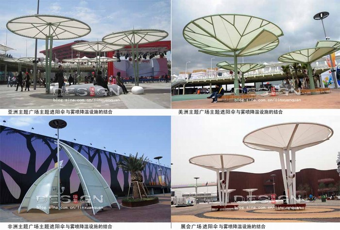 圖7:懸掛式噴霧終端和世博主題遮陽傘結(jié)合 |