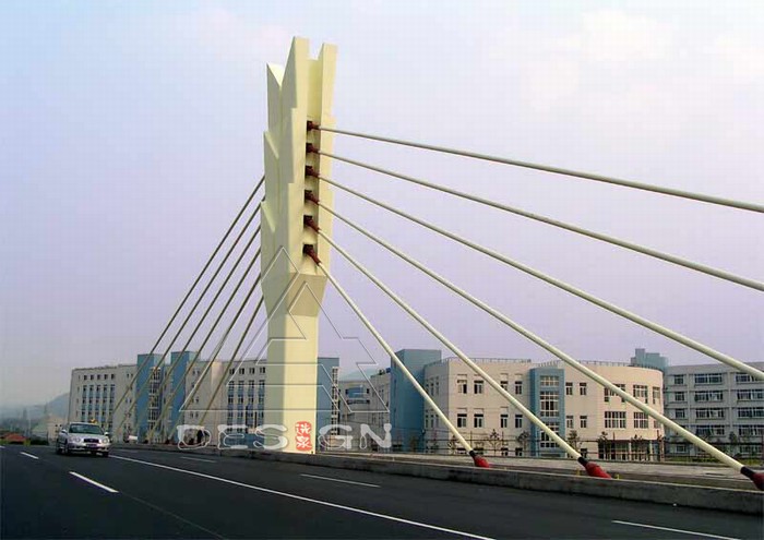 斜拉橋是一種新型現(xiàn)代橋梁,其實(shí)這種結(jié)構(gòu)型式古已有之,近50年來(lái)得到長(zhǎng)足發(fā)展。斜拉橋其剛度大,空氣動(dòng)力性能好,且簡(jiǎn)捷流暢、輕巧纖細(xì)、連續(xù)舒展,向上動(dòng)勢(shì)感強(qiáng),體現(xiàn)橋梁的現(xiàn)代美。