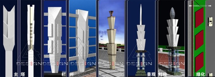 將橋梁橋梁景觀設(shè)計(jì)的總體理念及其所要傳達(dá)的各層面的的抽象語(yǔ)意,轉(zhuǎn)換成具體的符號(hào)概念,應(yīng)用在具體的橋梁景觀設(shè)計(jì)的基本系統(tǒng)和運(yùn)用系統(tǒng)中,以標(biāo)準(zhǔn)化,系統(tǒng)化,統(tǒng)一性的手法,塑造橋梁及橋域獨(dú)特的形象及文化。